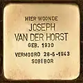 HIER WOONDE JOSEPH VAN DER HORST GEB. 1930 VERMOORD 28-5-1943 SOBIBOR |