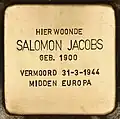 HIER WOONDE SALOMON JACOBS GEB. 1900 VERMOORD 31-3-1944 MIDDEN EUROPA |