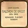 HIER WOONDE SALOMON DE GROOT GEB. 1892 VERMOORD 7-5-1943 SOBIBOR |
