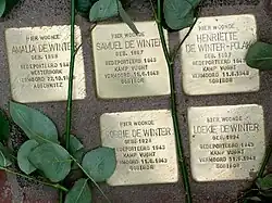 AMALIA DE WINTER GEB. 1898 GEDEPORTEERD 1943 WESTERBORK VERMOORD 22.10.1943 AUSCHWITZ |