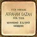 HIER WOONDE ABRAHAM GAZAN GEB. 1920 VERMOORD 7.5.1943 SOBIBOR |