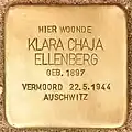 HIER WOONDE KLARA CHAJA ELLENBERG GEB. 1897 VERMOORD 22.5.1944 AUSCHWITZ |