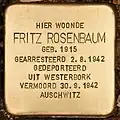 HIER WOONDE FRITZ ROSENBAUM GEB. 1915 GEARRESTEERD 2.8.1942 GEDEPORTEERD UIT WESTERBORK VERMOORD 30.9.1942 AUSCHWITZ |