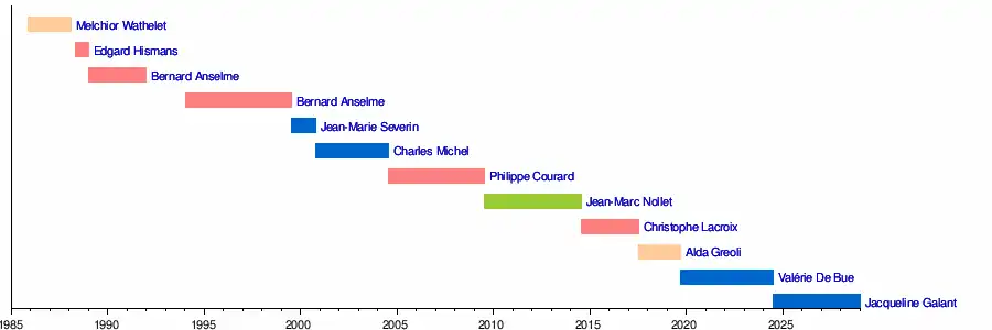MR | 13 september 2019 | 15 juli 2024 | Di Rupo III | Ambtenarenzaken en Administratieve Vereenvoudiging | |