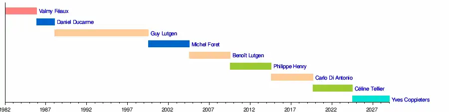 cdH | 19 juli 2004 | 15 juli 2009 | Van Cauwenberghe II, Di Rupo II, Demotte I | Milieu | |