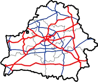 | M8 | Rusland (R-23) - Vitebsk - Orsja - Mahiljow - Homel - Oekraïne (M01) | 465 km | |