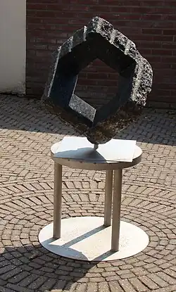 | onbekend | Doorbraak[3] | Thorvald Dudok van Heel | Koppelstraat (Koppelkerk) | Bredevoort | zwart larvikietsteen, staal | |