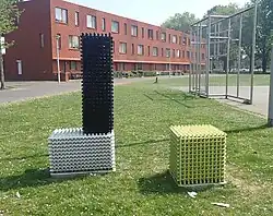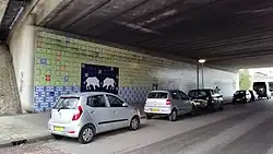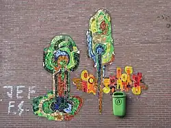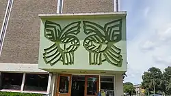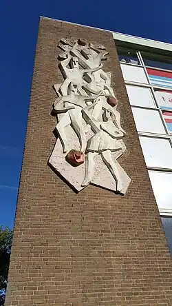 bestaat uit 22 delen op gevels Afgebeeld gevelkunst aan Valutaboulevard 54