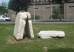 2 zuilen met kruisvormen Westelijke zuil afgebeeld