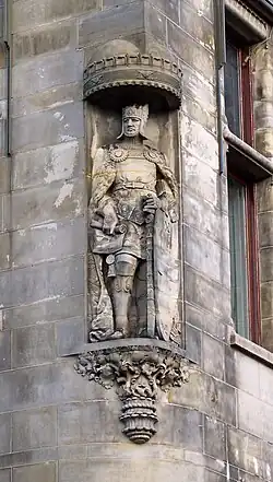 | 1957[11] | 'Voorzichtigheid' en 'Betrouwbaarheid' (beelden bovenop) | Albert Termote | Gevel Springhaver parkeergarage | steen |