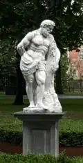 - ↑ Oorspronkelijk van beton, in 1990 vervangen door een sterieten (kunststof) replica van Rob Pleijsier.