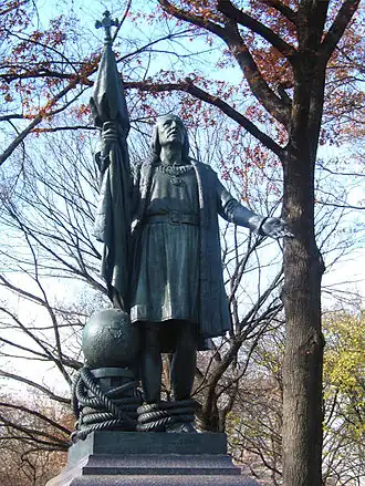 - In 1892 werd een beeld van Christoffel Columbus gedoneerd aan Central Park door de New York Genealogical and Biographical Society ter nagedachtenis aan de vierhonderdste verjaardag van zijn aankomst in de Amerika's. Het beeld is een replica van een beeld van Jeronimo Suñol uit 1892[3] welke op de Plaza de Colón in Madrid staat. De versie in New York is geplaatst in 1894 en is tegenwoordig een van twee beelden van Columbus - de ander staat op Columbus Circle. Columbus staat in het beeld met uitgestrekte armen en kijkt naar boven.