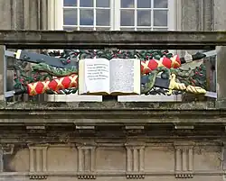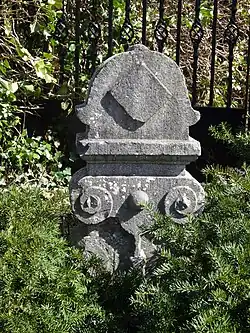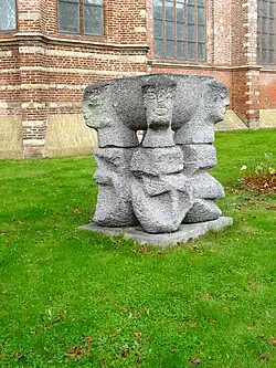 - ↑ In 1956, na een restauratie, aan de kerk geschonken en in de doopkapel geplaatst. Na de restauratie van 1997-2001 aan de buitenzijde van het gebouw geplaatst.