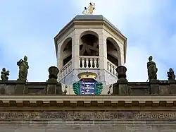 | Beelden op de gevel van het stadhuis met stadswapen Enkhuizen | Breedstraat | Enkhuizen |