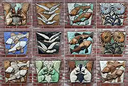 | 195? | Tableaus met dier- en bloemmotieven (12 exemplaren) | Anno Smith | Borgwal 2/Bedumerweg 103-105 | Groningen | geglazuurd terracotta |