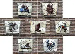 - ↑ Gemaakt in 1975 als onderdeel van de dierenriemtekens, de serie werd echter nooit voltooid.