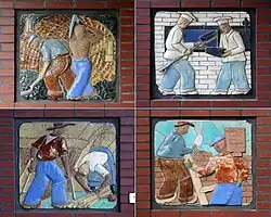 | 1950 | Tableaus met ambachtslieden (4 exemplaren) | Anno Smith | Soendastraat/Palembangstraat/Molukkenstraat | Groningen | geglazuurd terracotta |