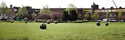 | 1957 | zonder titel (29 reliëfstenen boven portieken) | Thees Meesters | Almastraat, Johann de Wittstraat, A. Pauwstraat, J. van Oldenbarneveltlaan | Groningen | baksteen | o.a. ![]()