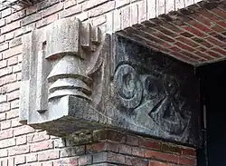 | 1913 | Reliëf socialistische strijd | Arie van der Lee? | Taco Mesdagplein 7 | Groningen | zandsteen |