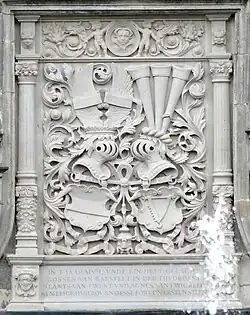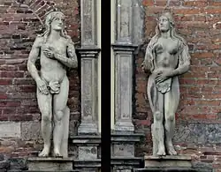 - ↑ In 1848 werden er kopieën van de oorspronkelijke beelden van de beeldhouwer Ney geplaatst, die in 1993 zijn vervangen door zandstenen exemplaren (bron Rijksdienst voor het Cultureel Erfgoed)