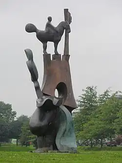 - ↑ de stijl en de oppervlaktebewerkingen doen denken aan het werk van Joop Puntman. Zie bijvoorbeeld het muurreliëf Hoogstraat te Montfoort (1965) en "Steigerend Paardje" uit de Lijst beelden in Leusden
