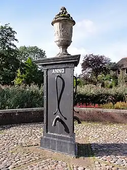 | 1884 | Bonifatiuspomp en 18e-eeuwse tuinvaas | Bronlaan - Stroobosserweg, Bonifatiuskapel | Dokkum | gietijzer |