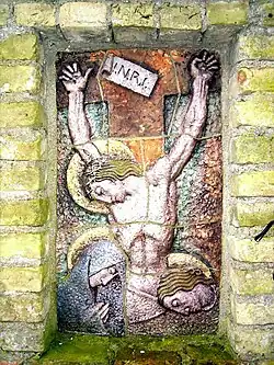 | 1949 | Kruiswegstatie | Jac Maris | Processiepark bij de Bonifatiuskapel, Bronlaan 1 | Dokkum | Terracotta en baksteen |