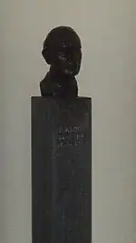 - ↑ Bronzen kop van Jan Kloos, schrijver van 'Noordwijk in de loop der Eeuwen'. Het werk is door bouw- en aannemersbedrijf "De Raad Bouw B.V." aan gemeente Noordwijk geschonken, ter gelegenheid van de ingebruikneming van het nieuwe gemeentehuis.