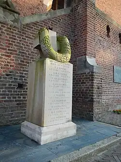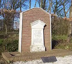 - ↑ (houten bank omringd door baksteen met twee ornamenten (Jan Vink)) Zie: Wapen en tekst.
