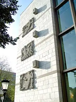 | 1957[11] | 'Voorzichtigheid' en 'Betrouwbaarheid' (beelden bovenop) | Albert Termote | Gevel Springhaver parkeergarage | steen |