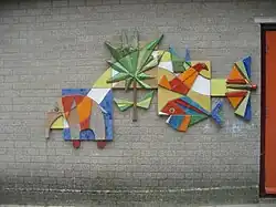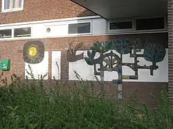 | 1980 | Dieren en planten | Henk Tieman | Emmausschool (Elstlaan) | Voorschoten | keramiek | |