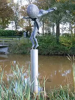 - ↑ De sculptuur was oorspronkelijk geplaatst bij het Huis te Wedde, zie: Schenk, Gerard (et al.) Beeld en land '87, Sellingen 1987 ISBN 90-9400943-9