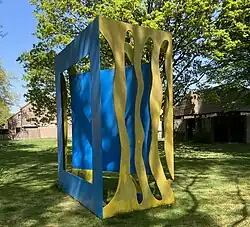 | Het Boek | Cyril Lixenberg | Tjalk 41 | Nieuw-Loosdrecht | Twee grote metalen panelen geschilderd in geel en blauw |