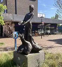 - ↑ Juni 2003 geplaatst in de tuin van Rading 1 bij de ingebruikname van het gemeentehuis van Wijdemeren gemaakt door Pieter van Velzen, beeldhouwer, kunstschilder en glazenier geb. 1911 te Weesp - overleden te Loosdrecht 1990 werkte en woonde o.a. aan de Nieuw Loosdrechtsedijk 88 waar het beeld oorspronkelijk in de tuin stond, later aan de Molenmeent