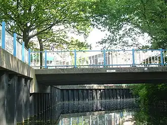 Het zwembad waar de brug heen leidde, is in 2007 afgebroken.