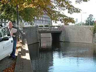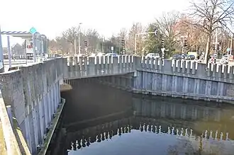 Hefbrug tussen Boekhorststraat en Koningsstraat met een wijdte van 4,94 m en een hoogte in gesloten stand van KP +1,40 m, in geheven stand is KP +2,45 m. (Te herkennen aan het feit dat er aan beide oevers slagbomen staan)