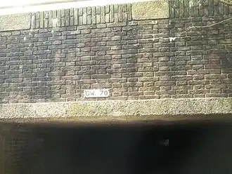 Vaste brug met een wijdte van 6,50 m en een doorvaarthoogte van KP +1,50 m. Locatie: op de hoek van de Boslaan en de Benoordenhoutseweg. Aansluitend links naast de foto is GW 68.