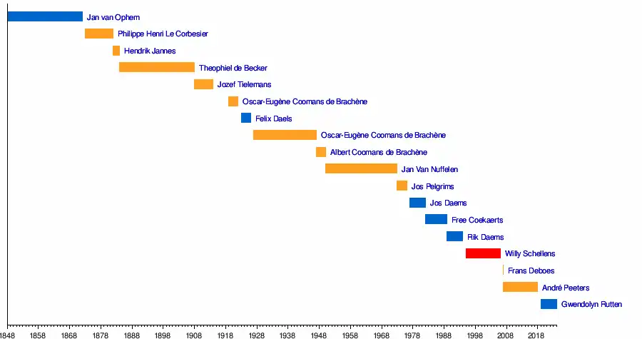| Nr. | Burgemeester | Ambtstermijn | Partij | |||