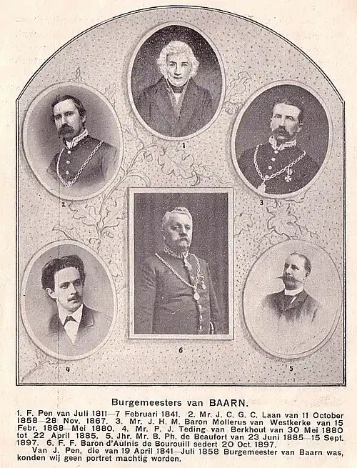 De burgemeesters Pen, Laan, Van Mollerus, Teding van Berkhout en de Beaufort waren tegelijkertijd burgemeester van Eemnes. Toen de gemeentes in 1895 samen meer dan 5000 inwoners hadden, kreeg Eemnes een eigen burgemeester. De Beaufort bleef toen aan als burgemeester van Baarn.
