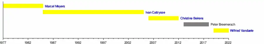 | Nr. | Burgemeester | Partij | Begin | Einde | ||