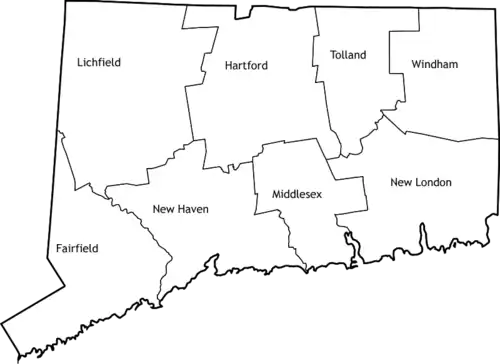 De Amerikaanse staat Connecticut is onderverdeeld in acht county's. De county's in deze staat hebben, in tegenstelling tot de county's in veel andere staten, geen eigen bestuur of andere instellingen. De county's hebben dan ook geen hoofdstad. De county's hebben bijna uitsluitend een geografische functie; als aanduiding van een bepaald gebied. Alleen het systeem van rechtbanken is min of meer gevormd naar de grenzen van de county's. Het lokale bestuur wordt door de gemeenten uitgeoefend.