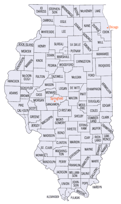 De Amerikaanse staat Illinois is onderverdeeld in 102 county's: