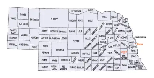 De Amerikaanse staat Nebraska is onderverdeeld in 93 county's.