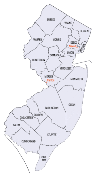 De Amerikaanse staat New Jersey is onderverdeeld in 21 county's.