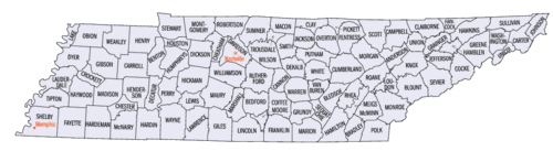 De Amerikaanse staat Tennessee is onderverdeeld in 95 county's, die weer zijn gegroepeerd in drie regio's (Grand Divisions).