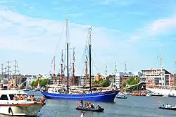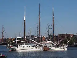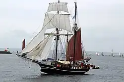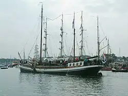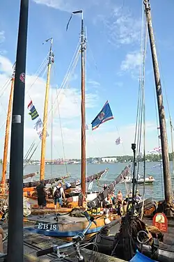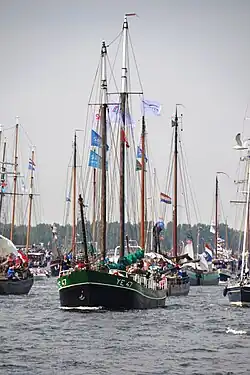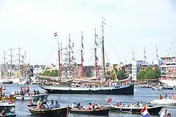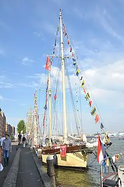 | Naam | Sail-In eskader[4] | Ligplaats | Soort schip | Bouwjaar | Lengte (m) | Breedte (m) | Diepgang (m) | Zeiloppervlak (m²) | Foto | ||