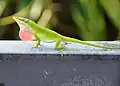 Anolissen | Deze grote familie telt ongeveer 425 soorten die voorkomen in zuidelijk Noord-Amerika, Midden-Amerika en delen van Zuid-Amerika. Het zijn boombewonende hagedissen die zeer behendig kunnen klimmen. | Roodkeelanolis (Anolis carolinensis) |