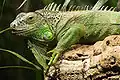 Leguanen | Leguanen komen voor in Noord- en Zuid-Amerika en leven in bomen in tropische gebieden. Er zijn ongeveer 45 soorten, die middelgroot tot groot worden, sommige worden meer dan een meter lang. | Groene leguaan (Iguana iguana) |