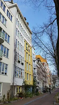 | Zwanenburgwal 20 | geen | Moderne architectuur uit 1990; loopt door tot in de Verversstraat |
