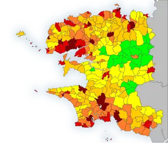Pencran - Penmarc'h - Peumerit - Plabennec - Pleuven - Pleyben - Pleyber-Christ - Plobannalec-Lesconil - Ploéven - Plogastel-Saint-Germain - Plogoff - Plogonnec - Plomelin - Plomeur - Plomodiern - Plonéis - Plonéour-Lanvern - Plonévez-du-Faou - Plonévez-Porzay - Plouarzel - Ploudalmézeau - Ploudaniel - Ploudiry - Plouédern - Plouégat-Guérand - Plouégat-Moysan - Plouénan - Plouescat - Plouezoc'h - Plougar - Plougasnou - Plougastel-Daoulas - Plougonvelin - Plougonven - Plougoulm - Plougourvest - Plouguerneau - Plouguin - Plouhinec - Plouider - Plouigneau - Ploumoguer - Plounéour-Ménez - Plounéour-Trez - Plounéventer - Plounévézel - Plounévez-Lochrist - Plourin-lès-Morlaix - Plourin - Plouvien - Plouvorn - Plouyé - Plouzané - Plouzévédé - Plovan - Plozévet - Pluguffan - Pont-Aven - Pont-Croix - Pont-de-Buis-lès-Quimerch - le Ponthou - Pont-l'Abbé - Porspoder - Port-Launay - Pouldergat - Pouldreuzic - Poullan-sur-Mer - Poullaouen - Primelin